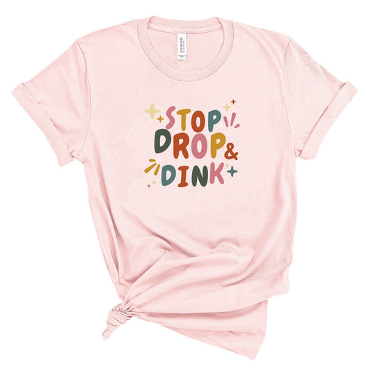 Stop, Drop, and Dink Tee | Punny Pickleball T-Shirt | Pickleball Puns | Women's and Men's Pickleball Shirt | Best Pickleball Gifts