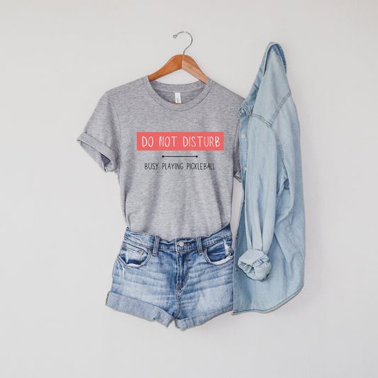 Do Not Disturb Busy Playing Pickleball T-Shirt | Modern Pickleball Short Sleeve Tee | Women's and Men's Pickleball Shirt | Pickle ball Gifts