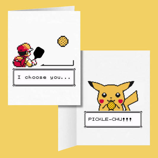 I Choose You Pickle-Chu Pokemon Pickleball Greeting Card