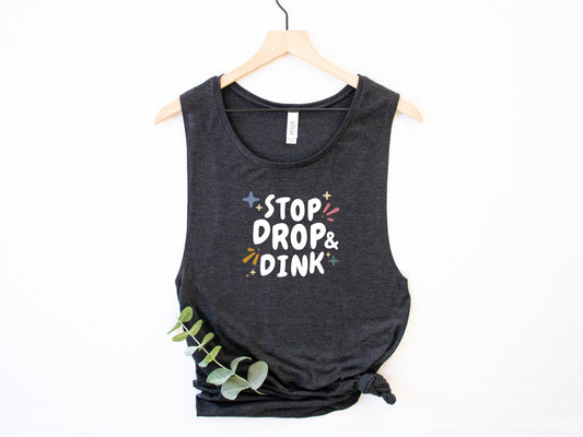 Stop, Drop, and Dink Pickleball Tank Top | Pickleball Tees | Women's Flowy Scoop Muscle Tank | Best Pickleball Gifts | Ladies Athletic Shirt