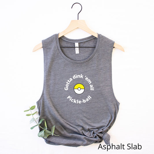 Gotta Dink 'Em All Pickle-ball Tank Top | Pokemon Gotta Catch Them All Punny Tank | Funny Pickle ball Tees | Women's Flowy Scoop Muscle Tank