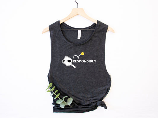 Dink Responsibly Pickleball Tank Top | Punny Pickleball Tee | Women's Flowy Scoop Muscle Tank | Best Pickleball Gift | Ladies Sports Apparel