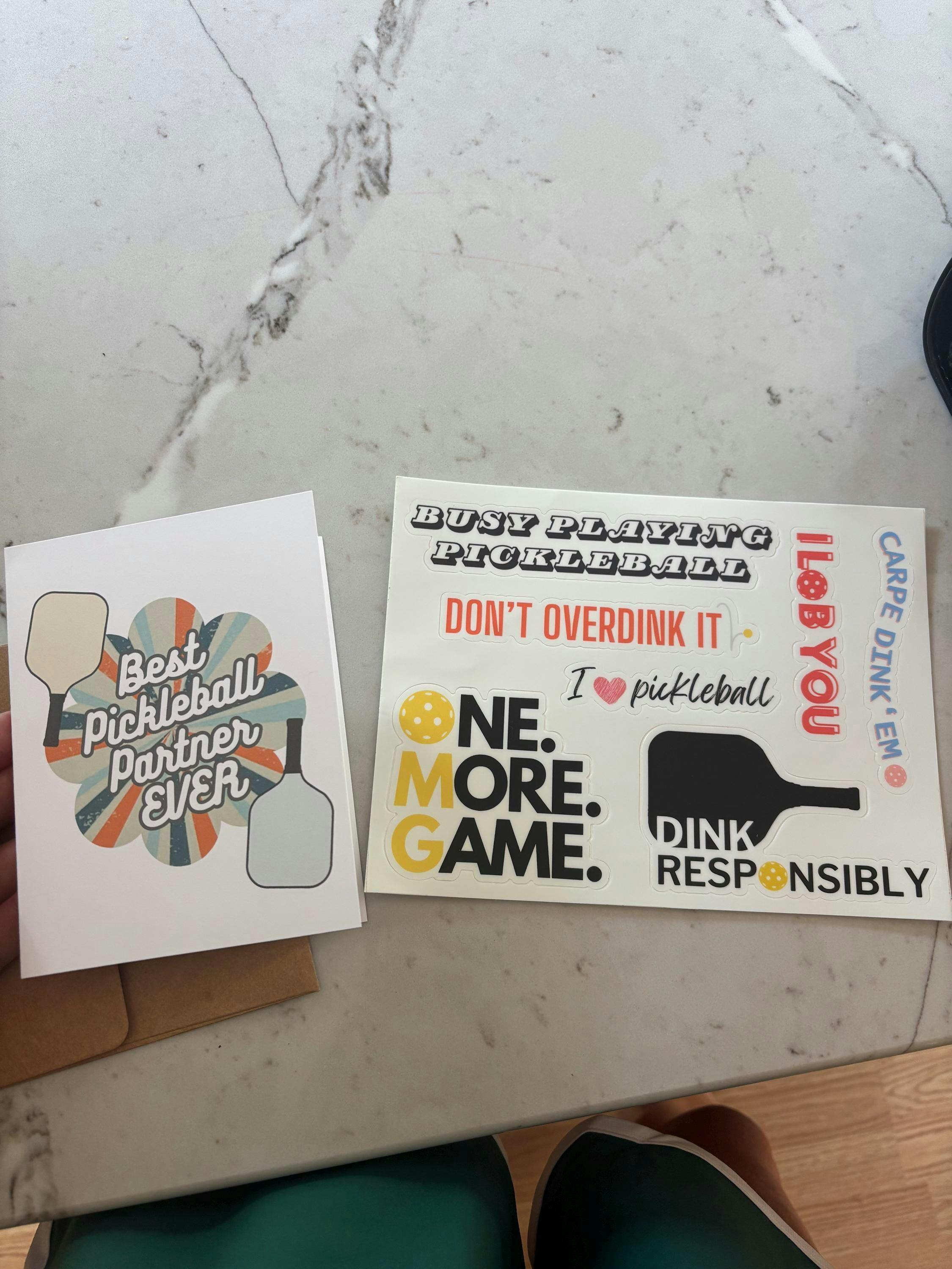 Looking for the perfect greeting card to gift to the best pickleball partner ever? Look no further! This pickleball greeting card was made for and by pickleballers. Gift this retro and thoughtful card to the best pickleball partner ever -- that partner on the pb court who always keeps you calm when you smash the ball into the net.